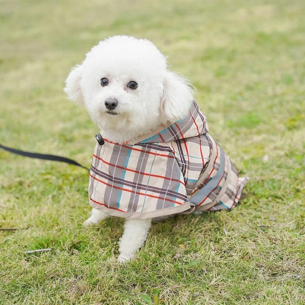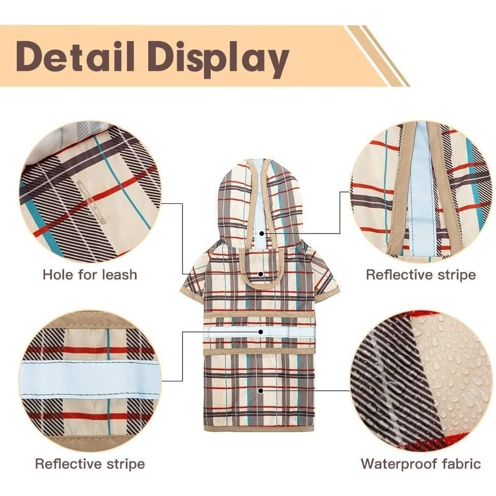 BUILT-IN LEASH HOLE & ELASTIC BUCKLE: The built-in leash hole at the back allows you to leash the dog while walking in the rain easily. The elastic buckle design on the hat can adjust the elasticity to fix the hat on the dog's head in comfort. The lightweight and thin fabric makes it easy to wear and take off the coat.
