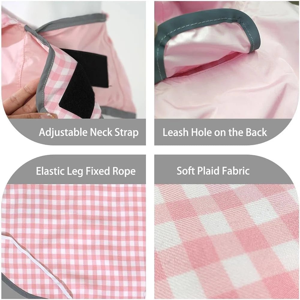 REVERSIBLE DESIGN: The reversible stylish slicker poncho can easily transform from solid color raincoat to plaid fabric jacket. Outer layer with strong waterproof ability material, inner with ultra breathable soft plaid fabric. Flip over dog rain gear and get a new look.